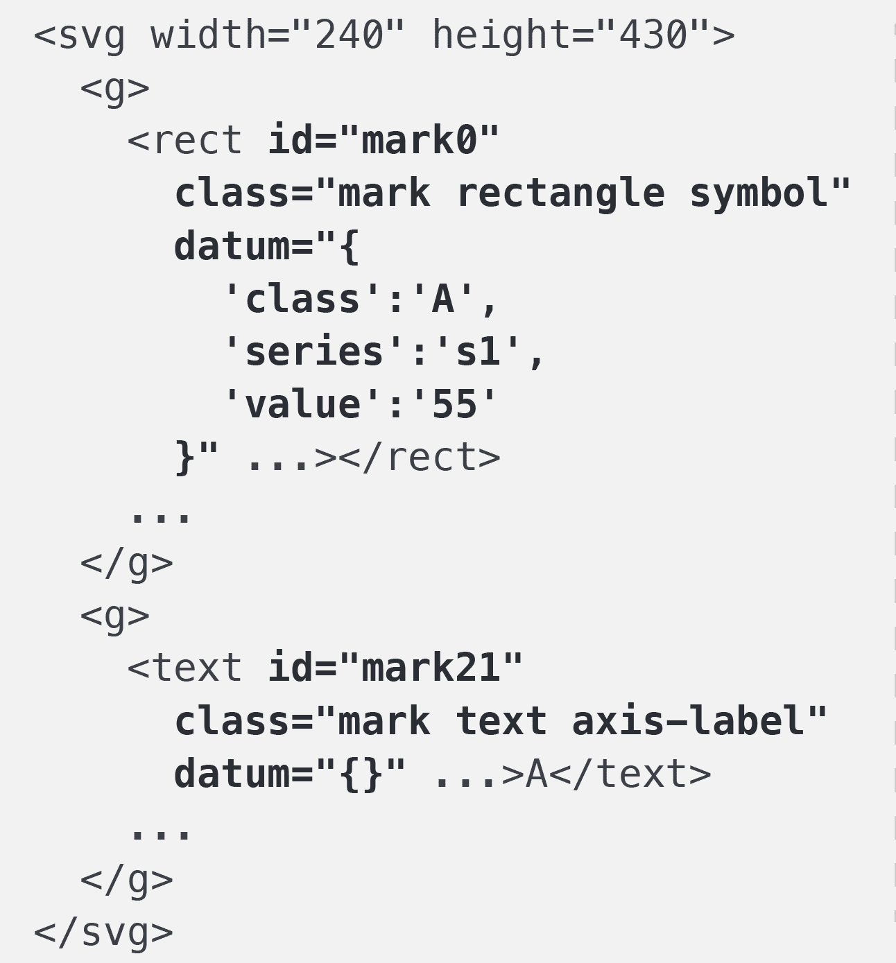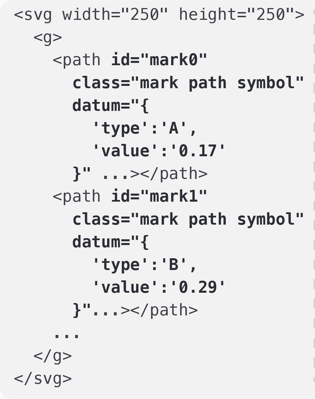 The example input dSVGs and Canis specifications for animating two different charts with different animation effects: (a) a donutchart with the “wheel” effect and a bar chart with the “wipe bottom” effect.