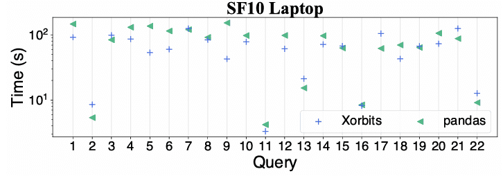 Figure 7: Compare Xorbits with underlying pandas to test potential overhead introduced by Xorbits.