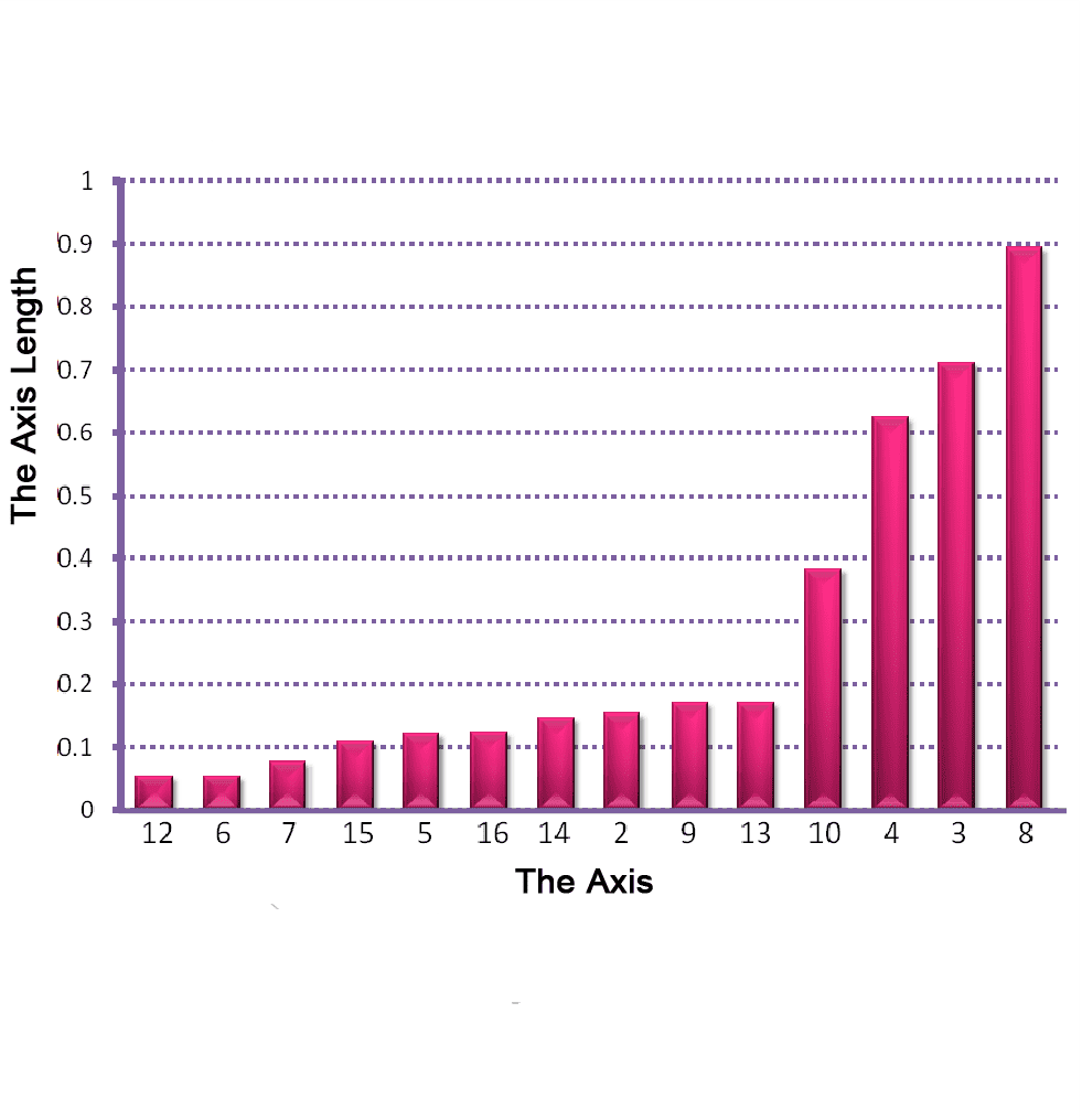 Figure 2: The star coordinates visualization for the unlabeled USDA data set. (a-d) show the star coordinates where the numbers of cluster are set to 3, 4, 5, 6, respectively; (e) the bar chart view of the DSC result in (c); (f,g) the DSC view and the bar chart view generated by removing first four axes whose length are noticeably shorter than the rest shown in (e); (h) The DSC view generated by manipulating the most important 4 axes, allowing the five clusters to be shown more clearly