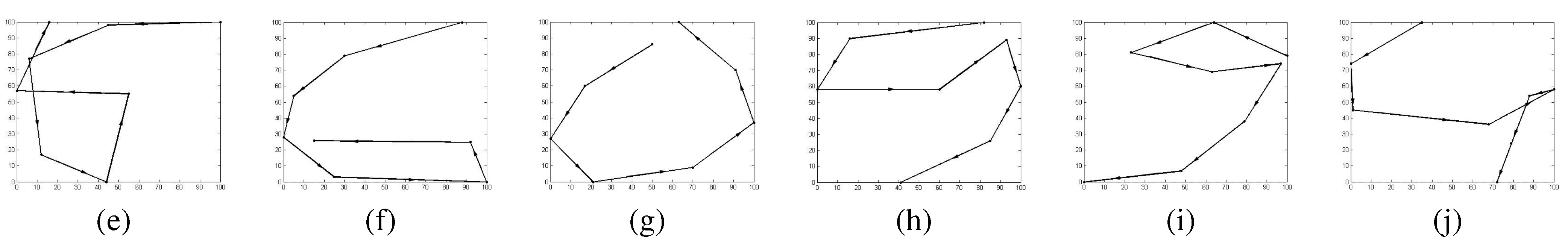 Figure 3:The star coordinates visualization for the labeled PENDIGITS data set, which contains 10 different clusters and each cluster corresponds to a digits. (a) The scatterplot visualization generated by projection pursuit result; (b) The scatterplot visualization generated by the result of the method [VLL11]; (c) The default DSC view; (c) The DSC view generated by zooming in the red and blue clusters (represent 0 and 6, respectively), where the outlier is highlighted with a black box; (d) The DSC view generated by zooming in the yellow, orange and light blue clusters (represent 4, 9, and 1, respectively), where the outlier is highlighted with a black box; (e) The digit 6 corresponding to the highlighted blue outlier in (c); (f,g) The representative samples from the clusters for digits 0 and 6, respectively; (h) The digit 9 corresponding to the highlighted orange outlier in (d); (i,j) The representative samples 9 and 4 from the two clusters, respectively.